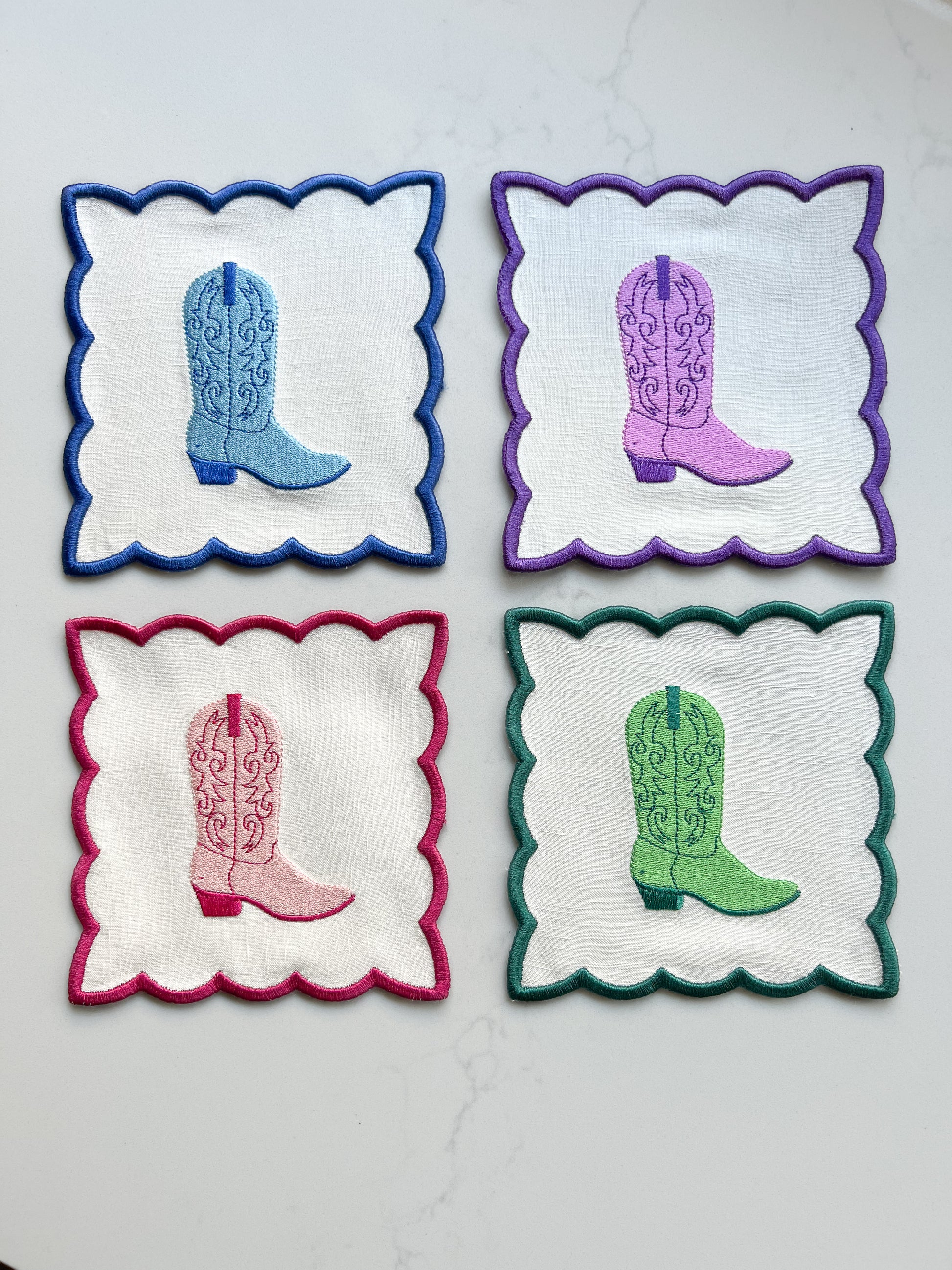 Beautiful linen curated into the Boot Set. These fun and festive boots are statement pieces to dress your favorite beverage.