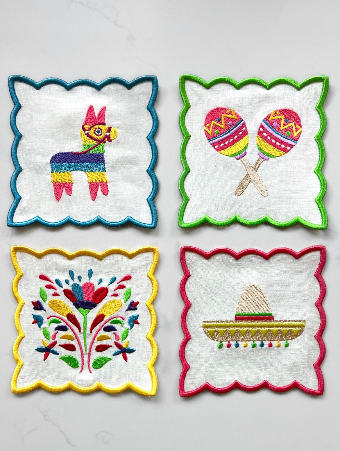 Featuring a pinata, maracas, sombrero, and a floral design, the Fiesta set is fun, festive, and bold. Perfect for Cinco De Mayo or any day you're toasting to a good time.