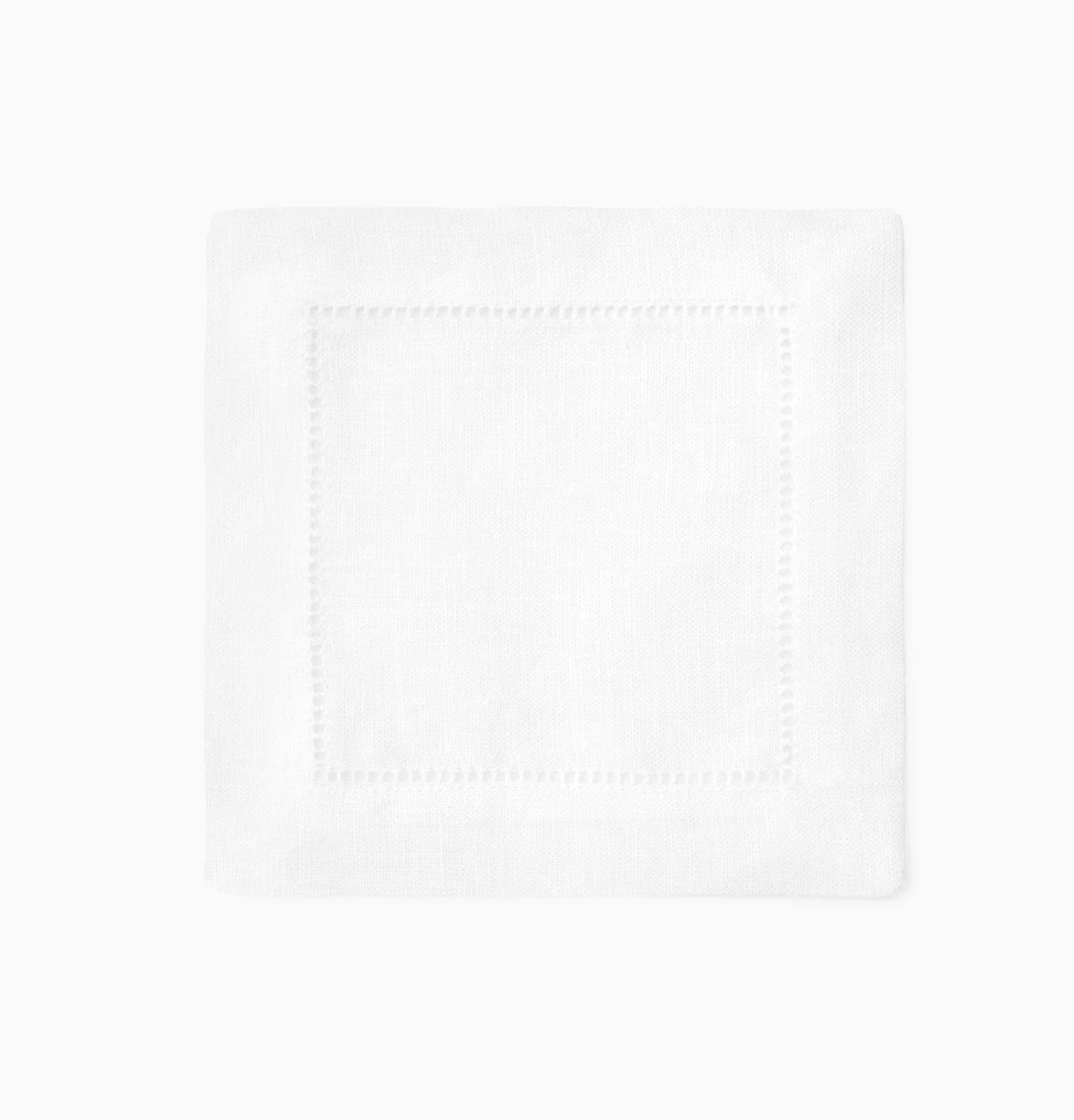 Napkins are 100% linen. Crafted on blue, white, or ivory napkins. All luxury brand, SFERRA.